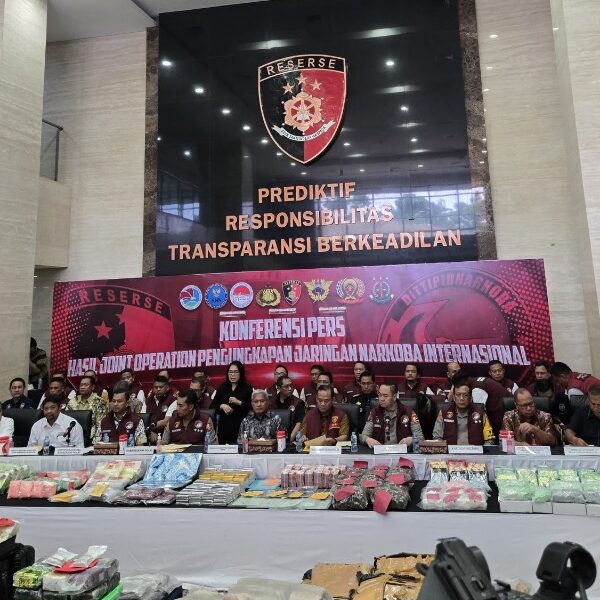 JAKARTA – Kapolda Kalimantan Utara, Irjen Pol Hary Sudwijanto, S.I.K., M.Si., yang juga menjabat sebagai Wakil Kepala Satuan Tugas Pemberantasan Penanggulangan dan Pengendalian Narkotika (P3GN), menghadiri kegiatan press release terkait hasil joint operation pengungkapan jaringan narkoba internasional. Acara tersebut berlangsung di Aula Lantai 9 Gedung Awaloedin Djamin, Bareskrim Polri, dan dipimpin langsung oleh Kabareksrim Polri.